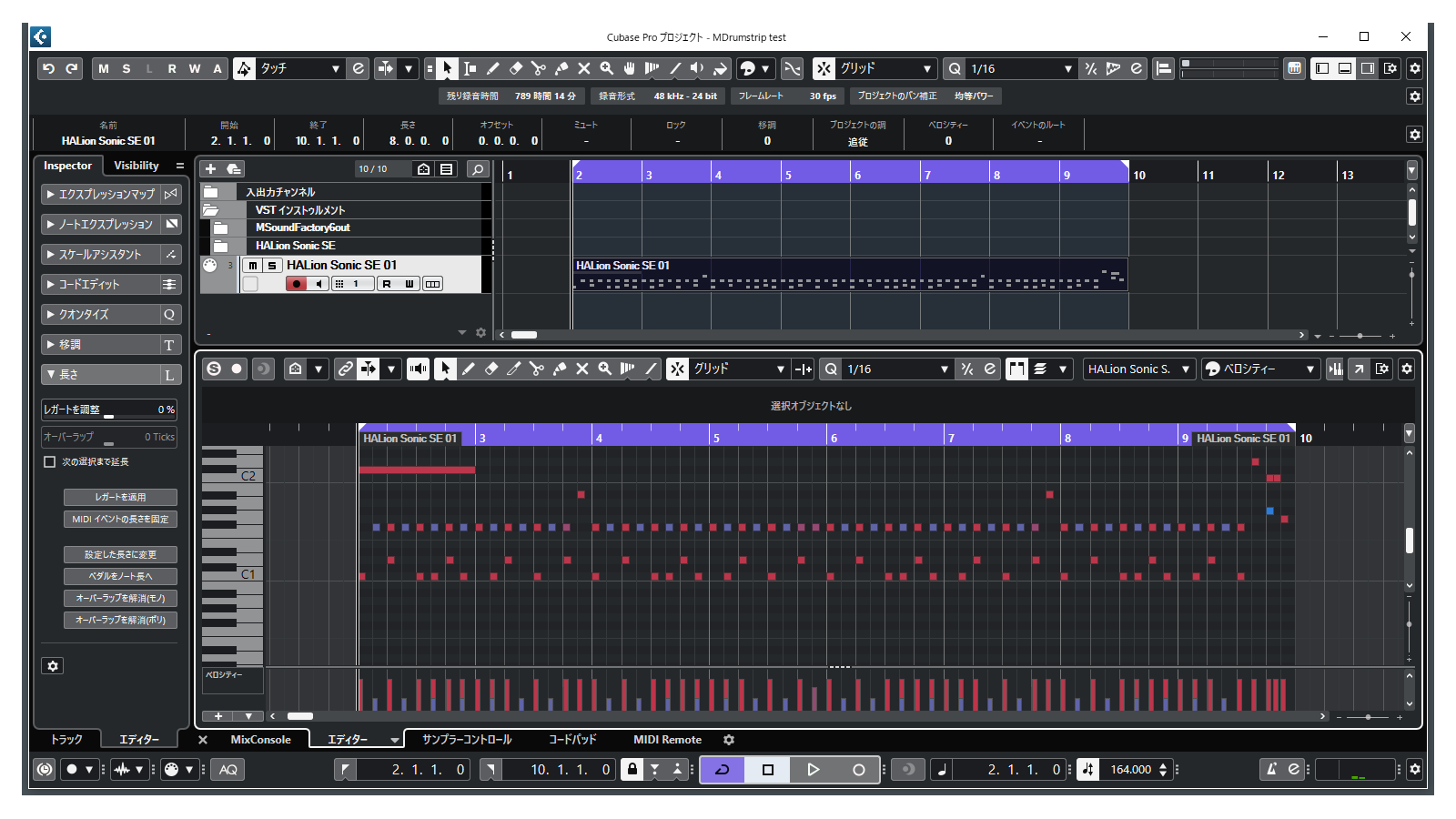 - 音源:HALion Sonic SE / Dry Standard Kit
