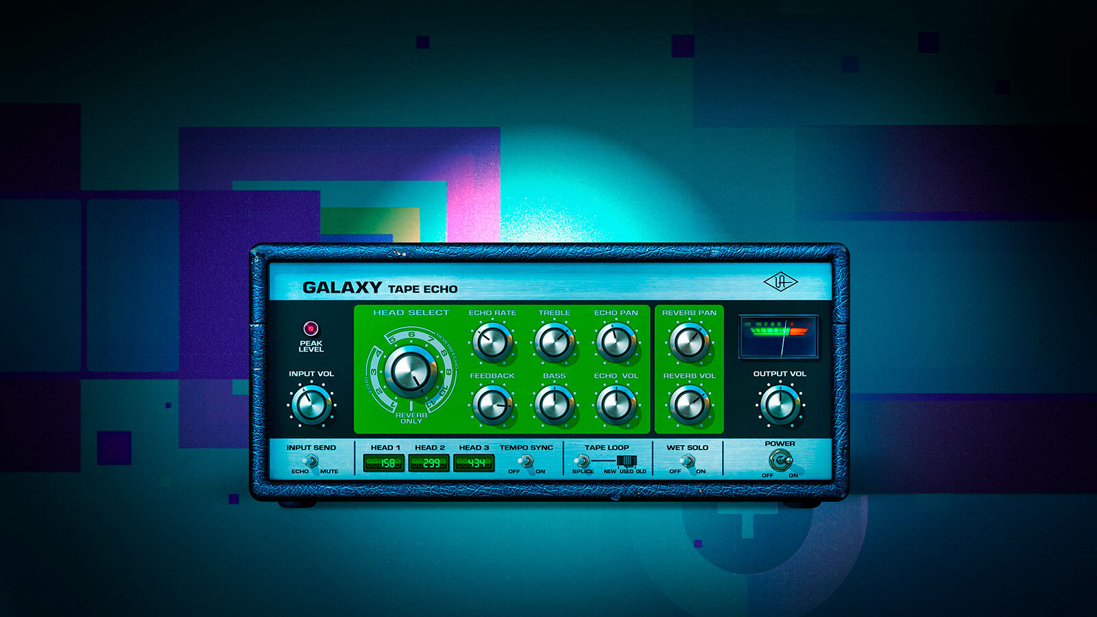 Galaxy Tape Echo は、1973年に発売された Roland RE-201 Space Echo をエミュレートした UAD プラグインです。オリジナルの実機が持つ下記の3要素を、物理的な挙動レベルで再現しています。