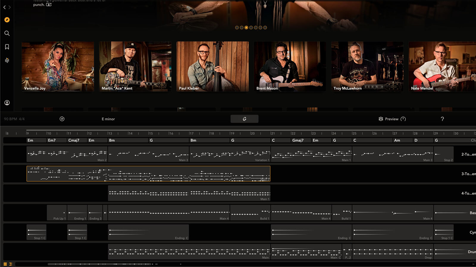 Tonalic は、いわゆる生成AIで音楽を作るタイプのツールではありません。Tonalic がやっているのは“生成”ではなく、実在するミュージシャンの演奏を、制作の中で「使える形」に持ち込むことです。30名を超える世界トップクラスのスタジオミュージシャンが参加していて、それぞれの個性や演奏アプローチが、録音された演奏として収録されている。それらを手軽に鳴らせる部分はあるんだけど、Tonalic の狙いは「簡単に作れる」ことよりも、“使える演奏”を曲の中で成立させることにあります。