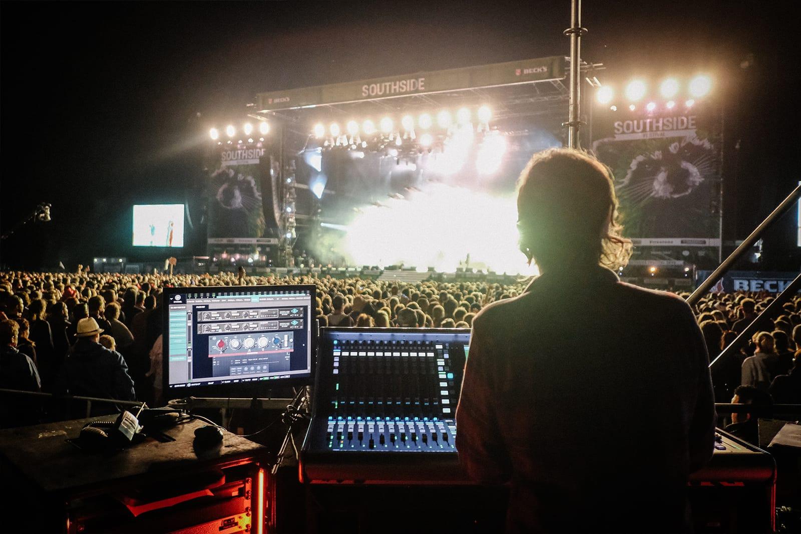 例えば、ショーの⼀部でバンド全員が1本のマイクの周りに集まることがあります。ボーカルからアコースティックギター、とにかくすべてが1本のマイクを通ることになりますよね。もちろん、私には彼たちがそれをステージのどこで演るのか、客席の中で行うのかは分かりません。狂ったようなフィードバックが起きないよう、臨機応変に素早くイコライジングを行う必要があります。しかしこれによって、⼤きなプロダクションの局面から少し離れ、オーディエンスとシンプルに、直接的に繋がることができるのです。