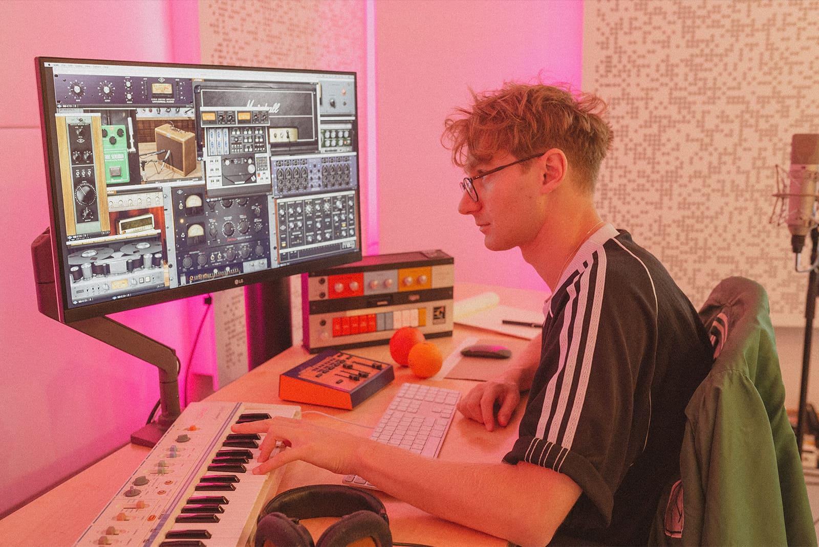 R&Bとヒップホップへの愛情、ギターと Ableton Live による巧みなタッチによって、Bayley は 6lack、DJ Dahi、Lianne La Havas、Flume をはじめ、多くの都会的なアーティストたちとの共同制作やコラボレーションを楽しんでいます。そして Adele や Rihanna のプロデュースで知られる Paul Epworth の傍で手法の一部を学んだ彼は、数年前に⾃⾝のスタジオを構え、UA ハードウエアと UAD プラグインの世界に飛び込みました - 今日、それらは Bayley の繊細なプロダクションにおける中核となっています。