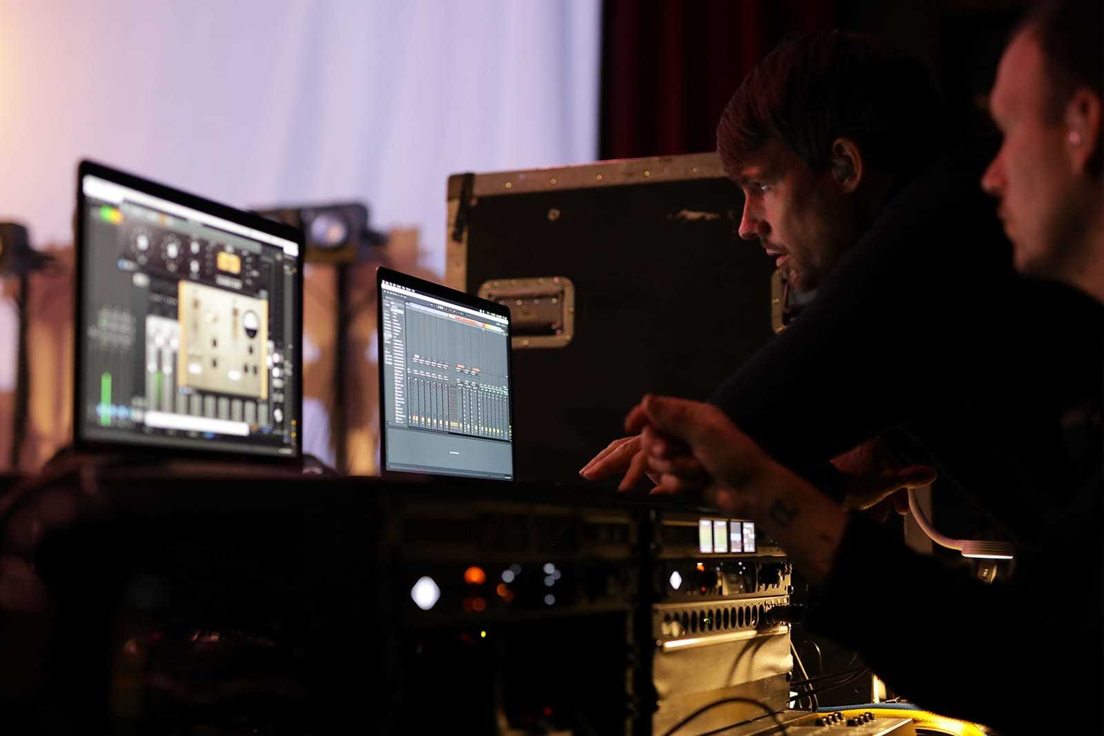 Hansen : ステージでは基本的に2つのシステムを用意しています - 1つは私のすぐ隣にセットされた新しい概念と新しいテクノロジーのテストゾーンである開発環境と呼ばれるようなコンピューターで、もう一方がFOH用のものとなります。基本的には Apollo 16 でやっていたことを主に私のシステムへ移植しました - コンソールアプリ内で UAD プラグインを使ってギターとベースを100%処理し、その後 Ableton Live でギターとベースのインサート処理を行っています。