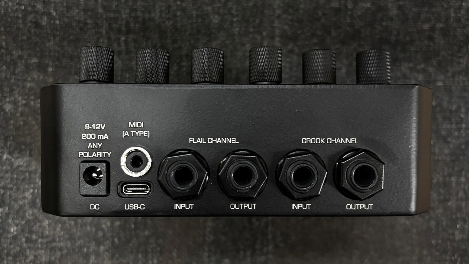 豊かで太く、厚みのあるサウンドとアンプのようなボイシングが特徴です。このチャンネルはより明瞭で粒立ちが良く、豊かなローエンドを備えています。 - FLAIL チャンネル(右側、赤色LED)