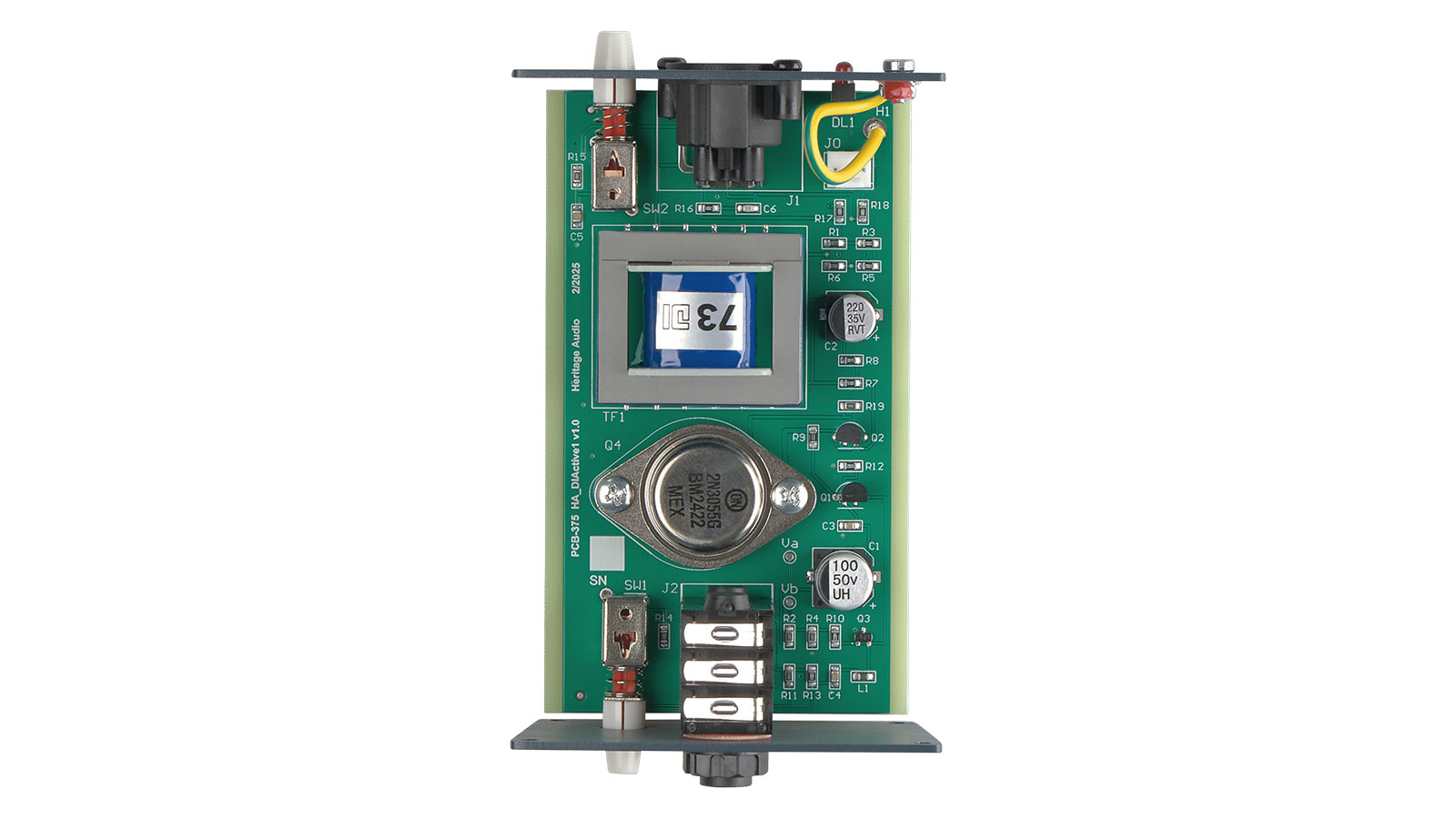 Heritage Audio は創業当初から 73 のトポロジー、とくそのサウンドの象徴となる “3055” トランスフォーマー・カップルのクラス A 出力段をこよなく愛しています。長年の時を経て、伝説的な 3 トランジスタ・トポロジー回路を採用し、最高の DI を実現することに成功しました。