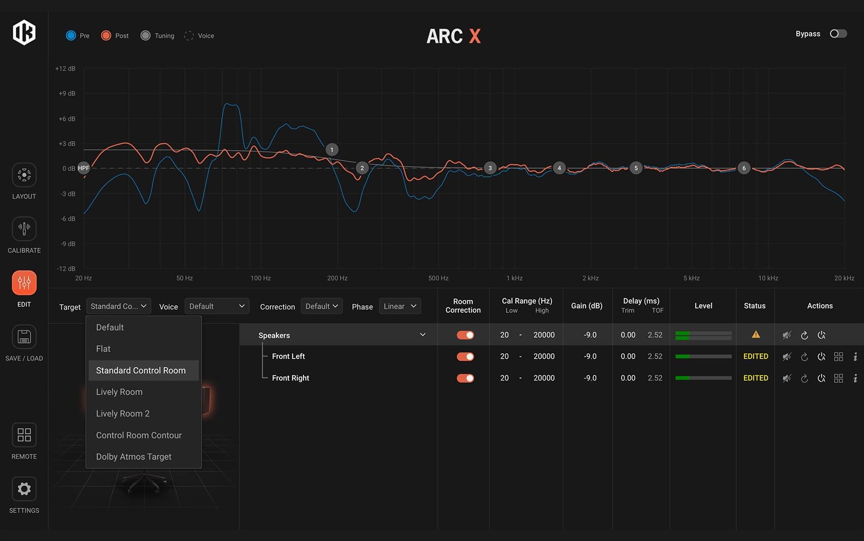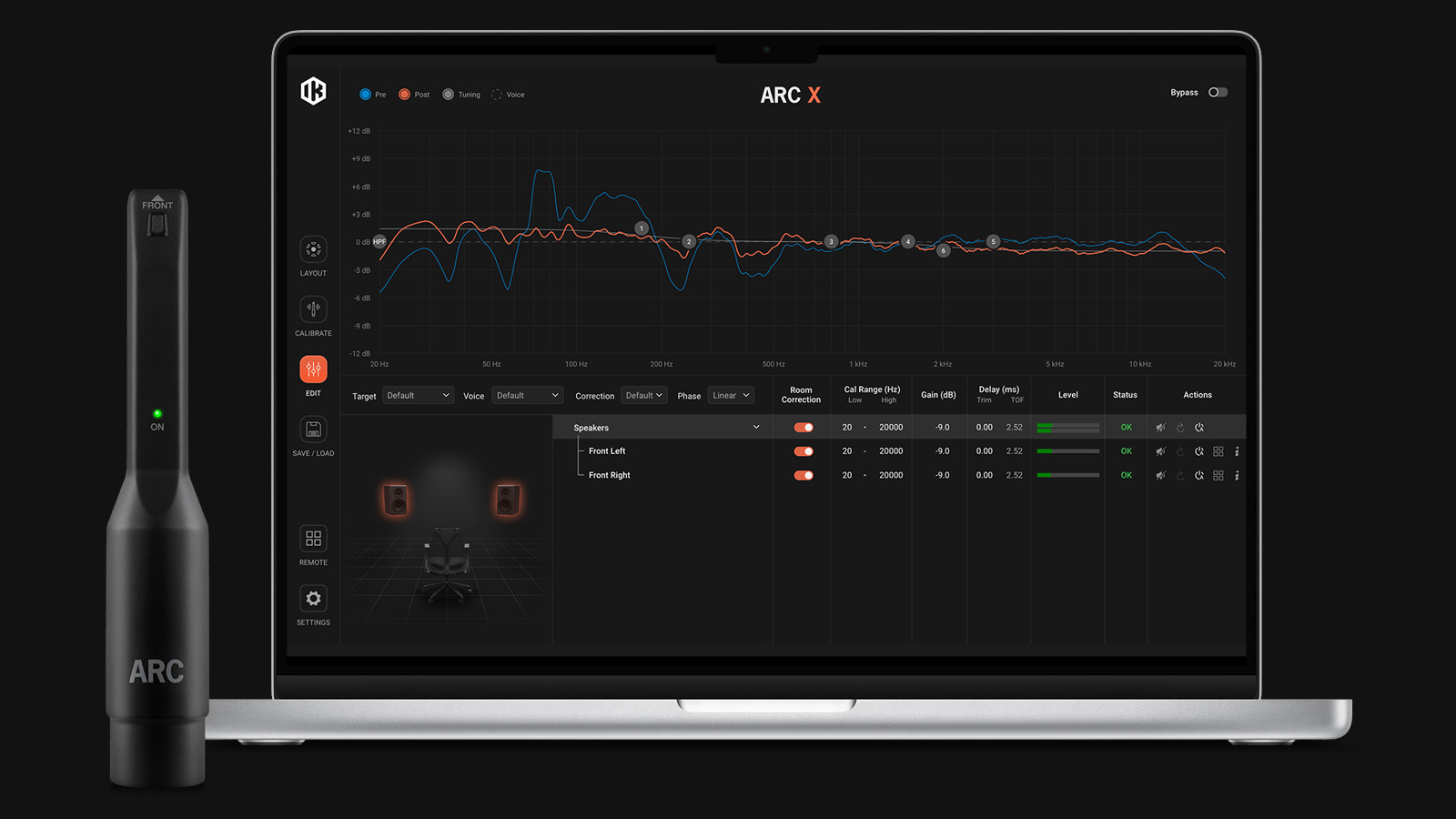 ARC X は直感的なインターフェースで、ルーム解析、キャリブレーション、スピーカー管理をスムーズに行えます。補正内容を視覚的に確認しながら、プロファイルを比較したり、わずかなクリックでシステムを細かく調整できるように設計されています。