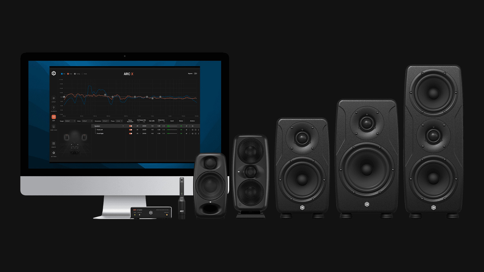 ARC® X は、ただの音場補正ではありません。次世代の音響キャリブレーション・プラットフォームとして、空間の最適化、インテリジェントなチューニング、先進的なボイシング、さらにはバーチャル・モニタリングまで、モニタリングに関わるすべてを、高い精度でコントロールするためのソリューションです。