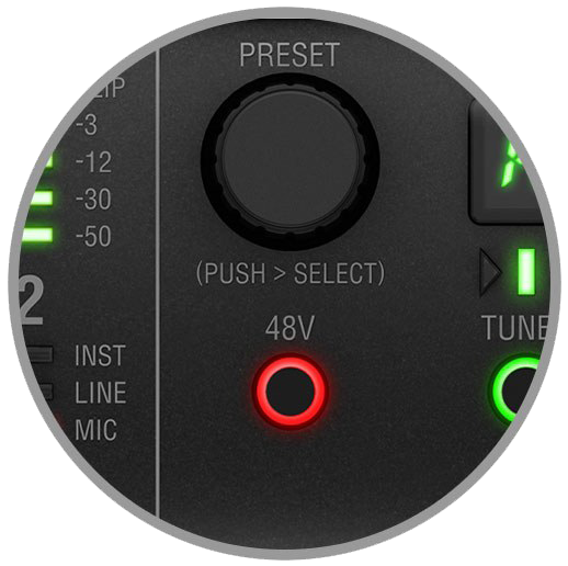 - AmpliTube プリセット切り替えなど自由にアサイン可能な PRESET ノブ