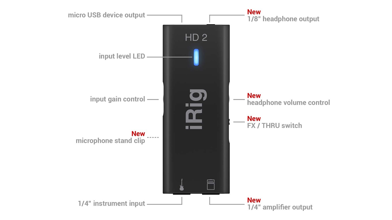 iRig HD 2 は、高い人気を得たギター / ベース用デジタル・オーディオ・インターフェイス、iRig HD の後継機種です。