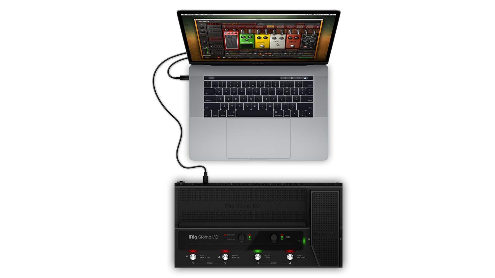 iRig Stomp I/O は、ステージ、スタジオを行き来するミュージシャンのストレスを、ソフトウェア/ハードウェアのシームレスな統合によって取り払います。