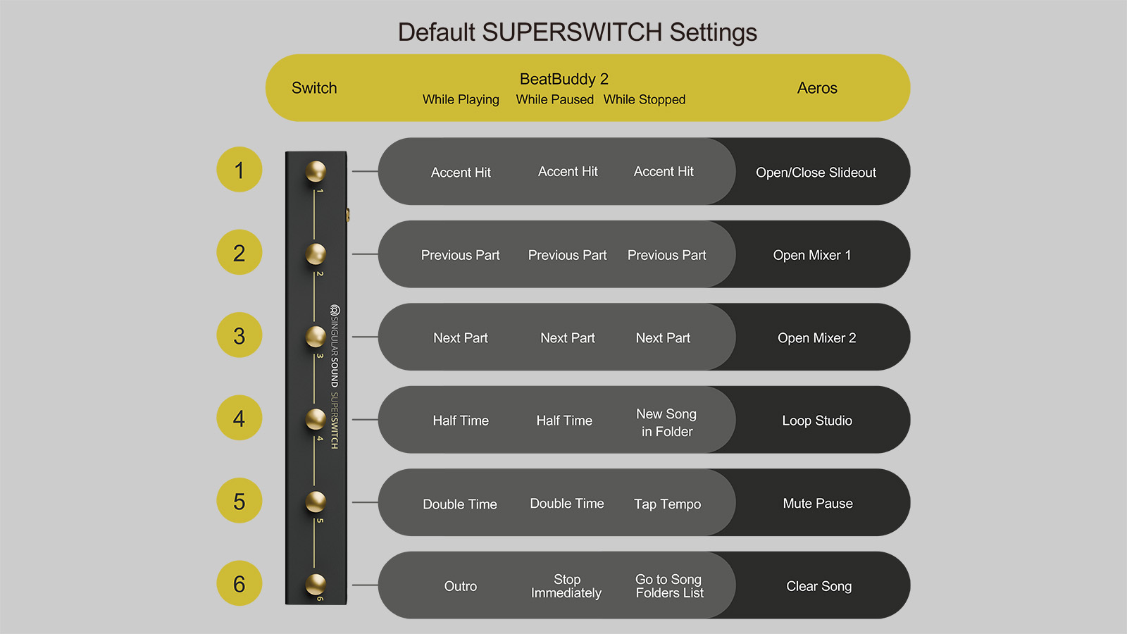 SuperSwitchは、AEROS*とBEATBUDDY 2のコントロールに新たな可能性をもたらします。