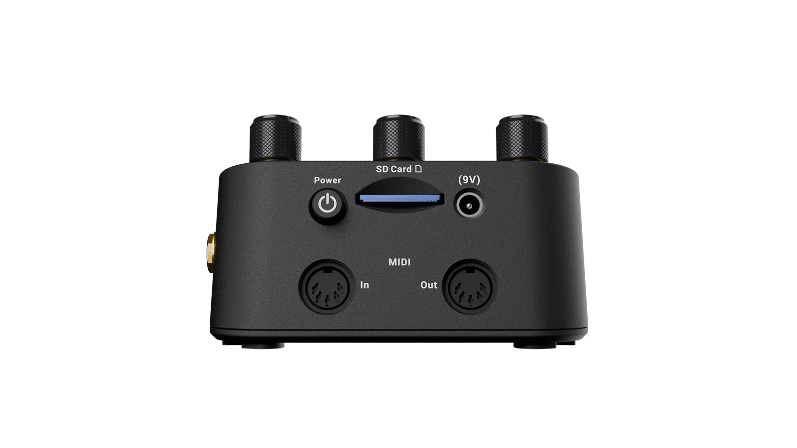 BeatBuddy 2のI/Oは、ステレオ入出力端子、ヘッドフォンジャック、MIDI 5ピン入出力、SDカードポート、9V電源ジャック、そして2つのマルチポート(EXP/EXT/SuperSwitch)を備えています