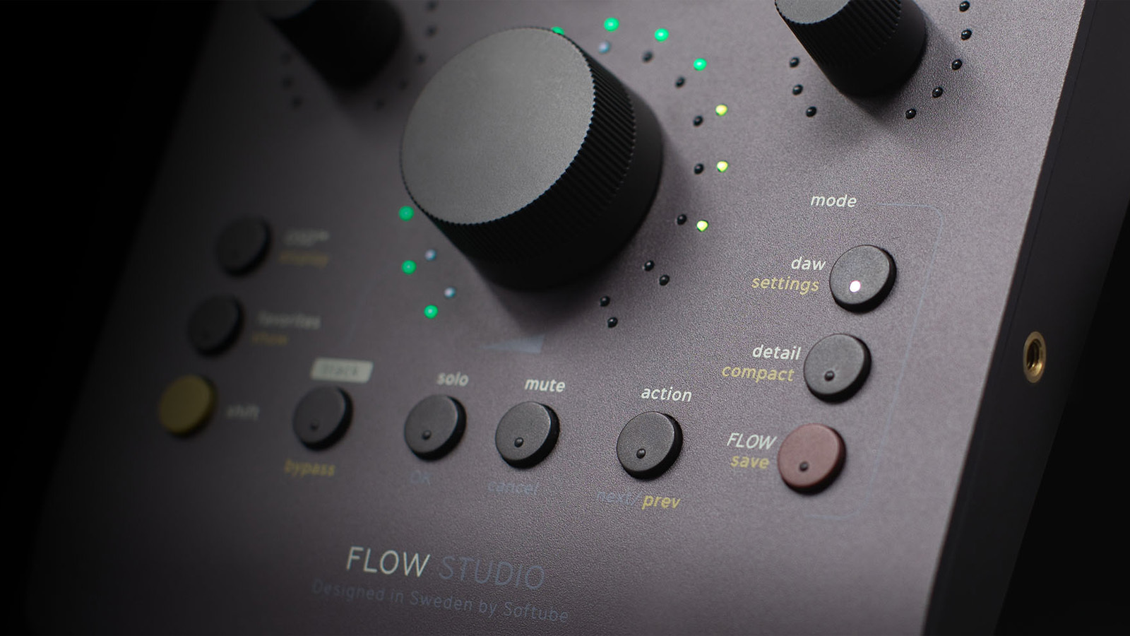Flow Studio は、Softube Flow Mixing Suite / Mastering Suite プラグインに対応するハードウェア・コントローラーです。Flow(シグナルチェーン)に含まれるプラグイン内のマクロをハンズオンで操作できるため、迅速かつ広範に渡るミキシングが可能です。Flow Studio には25種類のエフェクトと100種類以上の Flow の永続ライセンスが付属し、購入後すぐにお使いいただけます。
