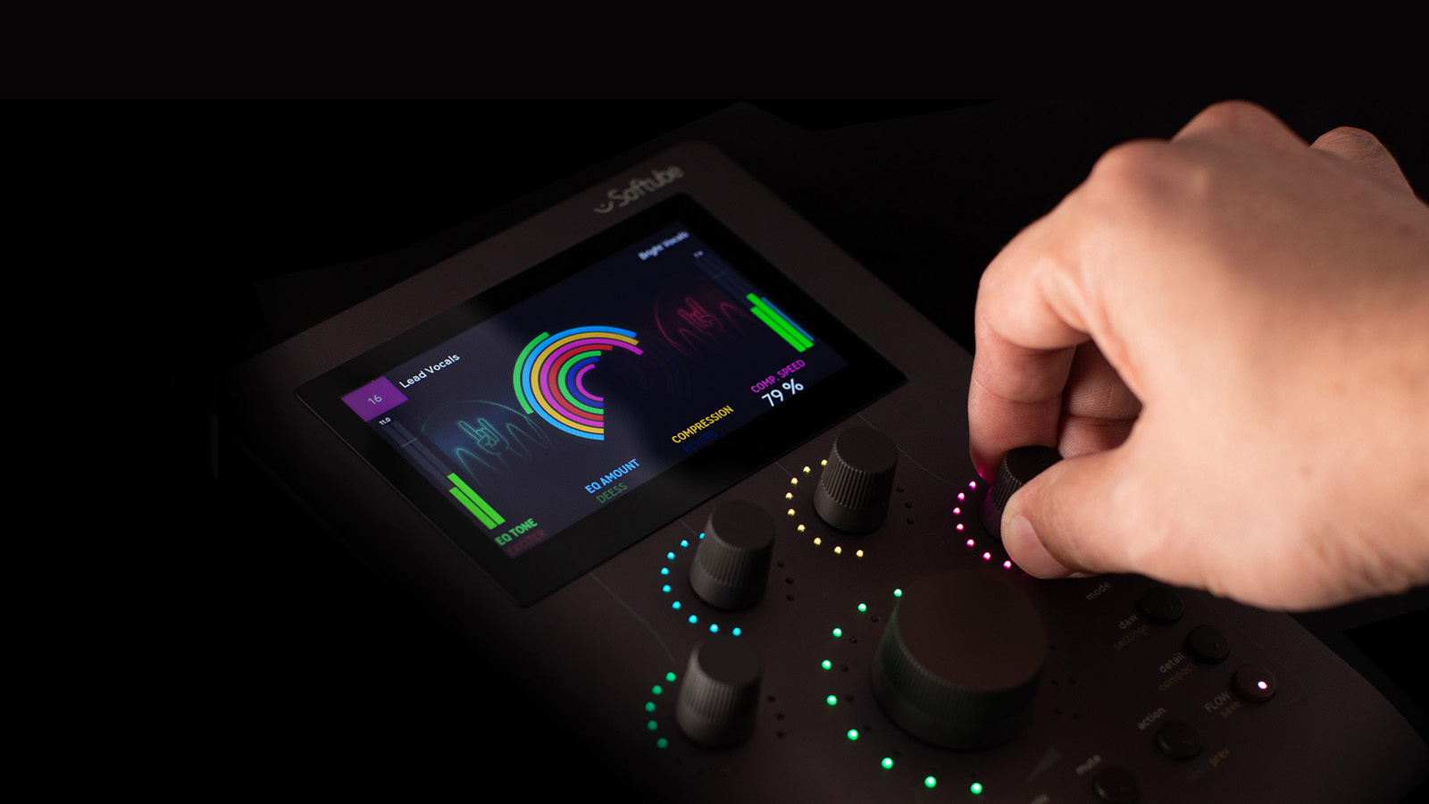 Detail モード : より掘り下げた調整が必要ですか? Detail モードでは、Softube プラグインの各パラメーターをハードウェアから直接調整できます。