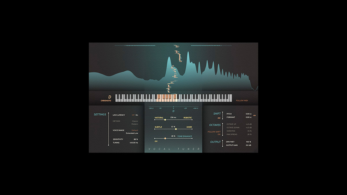 低レイテンシーのピッチ・コレクション。“Shift” と “Octaves” を調整し、ボーカルに厚みを持たせましょう。