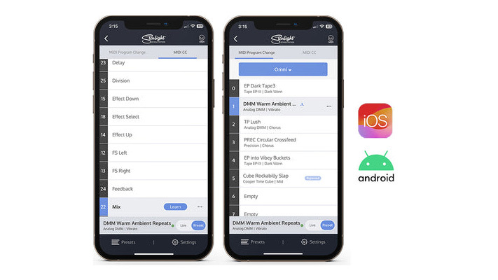 Starlight は、USB-MIDI 接続によって、さまざまな MIDI プログラマブル・デバイスとシームレスに連携し、プリセットの変更や BPM クロック同期などが行えます。ライブパフォーマンスをさらなる高みへ。