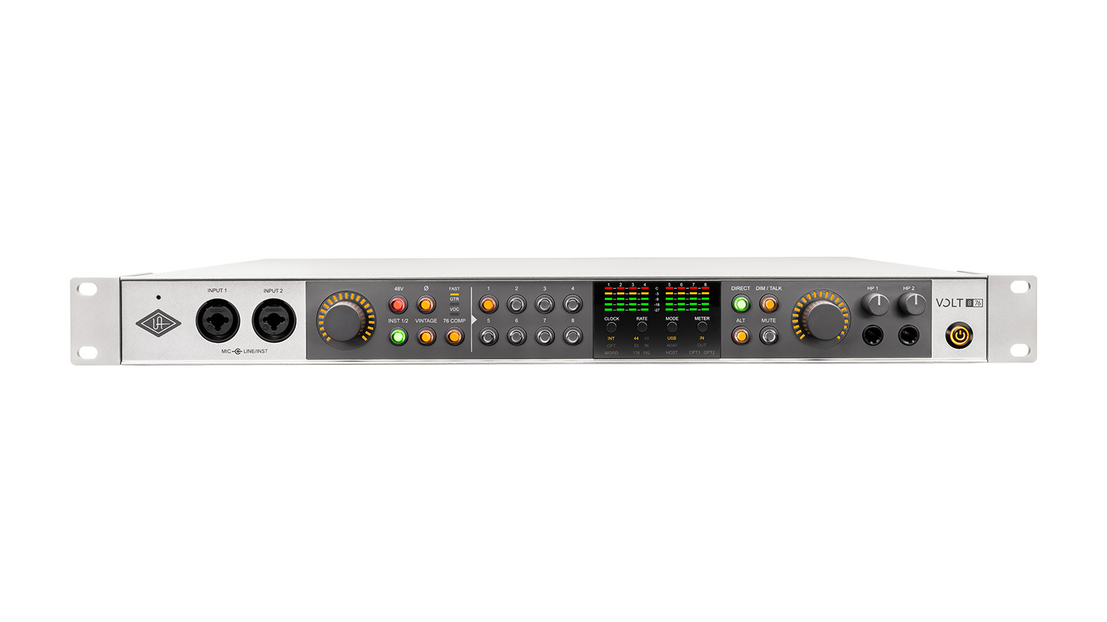 Apollo と同じ開発チームが手掛けた Volt 876 USB Recording Studio は、真摯な音楽制作者のための 32ビット/192 kHz オーディオ・インターフェイスです。8基の内蔵ビンテージ・プリアンプとクラシックな 1176 スタイルのコンプレッサーを搭載し、接続したすべてのマイクと楽器に魅力あふれるアナログ・スタジオのサウンドを提供します。