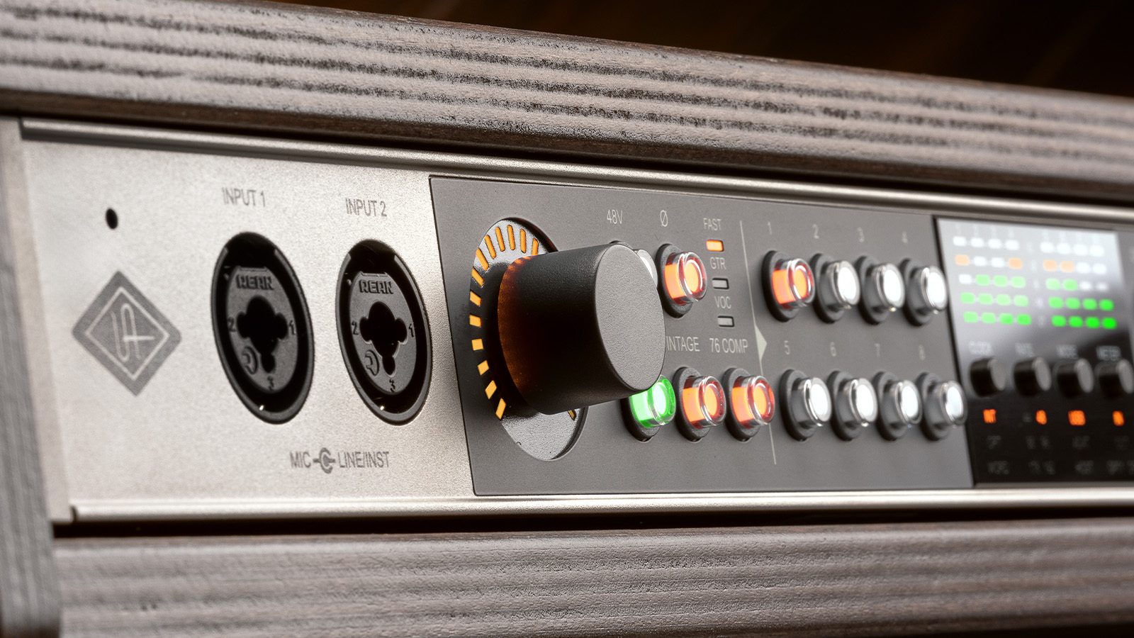 - UA の象徴的な 610 チューブ・コンソールと 1176 リミッターにインスパイアされた、8基の内蔵ビンテージ・プリアンプとクラシック・コンプレッサーで、豊かなアナログトーンを実現