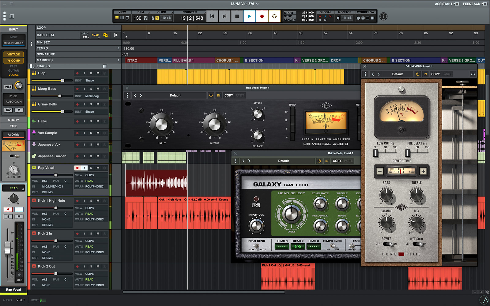Volt 876 は、あらゆる主要な DAW に対応します。さらに、付属する UA LUNA と組み合わせることで、ハードウェアとソフトウェアの強力な統合、無制限のトラック数、そして “Hey LUNA” と呼びかけることで機能するボイス・コントロール、楽器検出、テンポリッスンといった AI 搭載スマートツールによるレコーディングの利便性などを得られ、次世代のレコーディングを楽しむことができます。