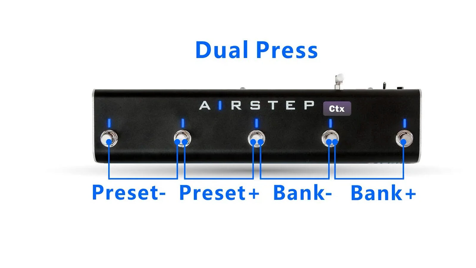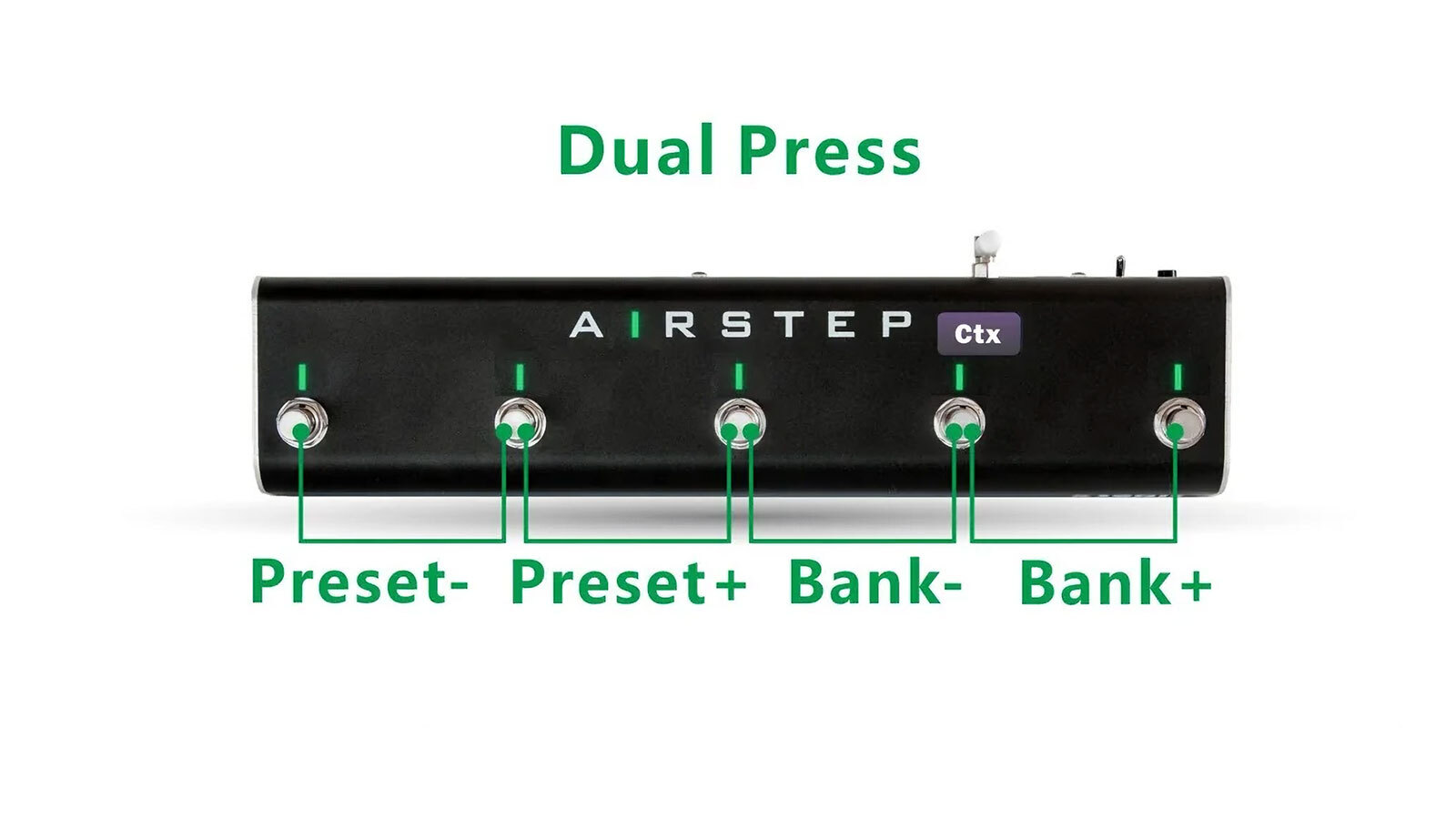 デュアルプレスを使用するとバンクとプリセットを切り替えることができます。