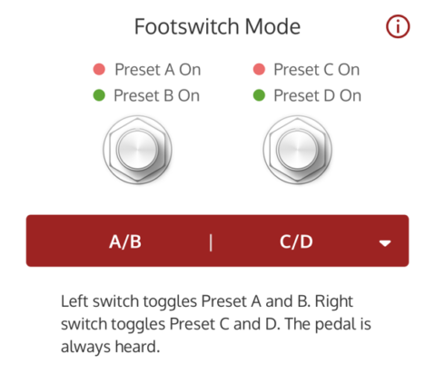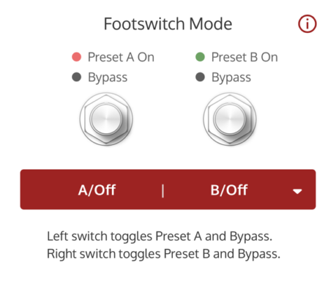 ANTI は、デフォルトで “Live|Preset” モードに設定されています。UAFX Control モバイル・アプリを使って、フットスイッチの割り当てを変更することができます。